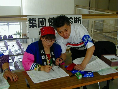 「朝早くからご苦労さまです」「午前中で終わるので助かります」など多くの方から喜びと感謝の言葉も寄せられています。(集団健診活動の写真を紹介します。少しでも様子が分かれば嬉しいです)